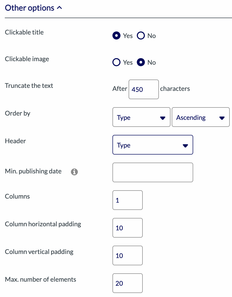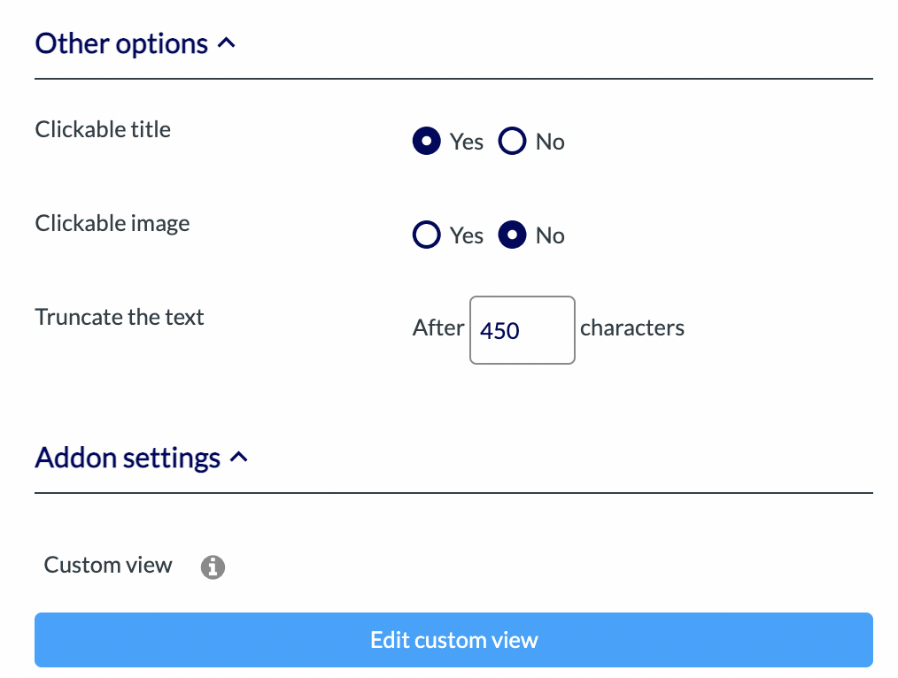 * **Truncate the text:** you can choose to limit the number of characters that will be displayed for the description.